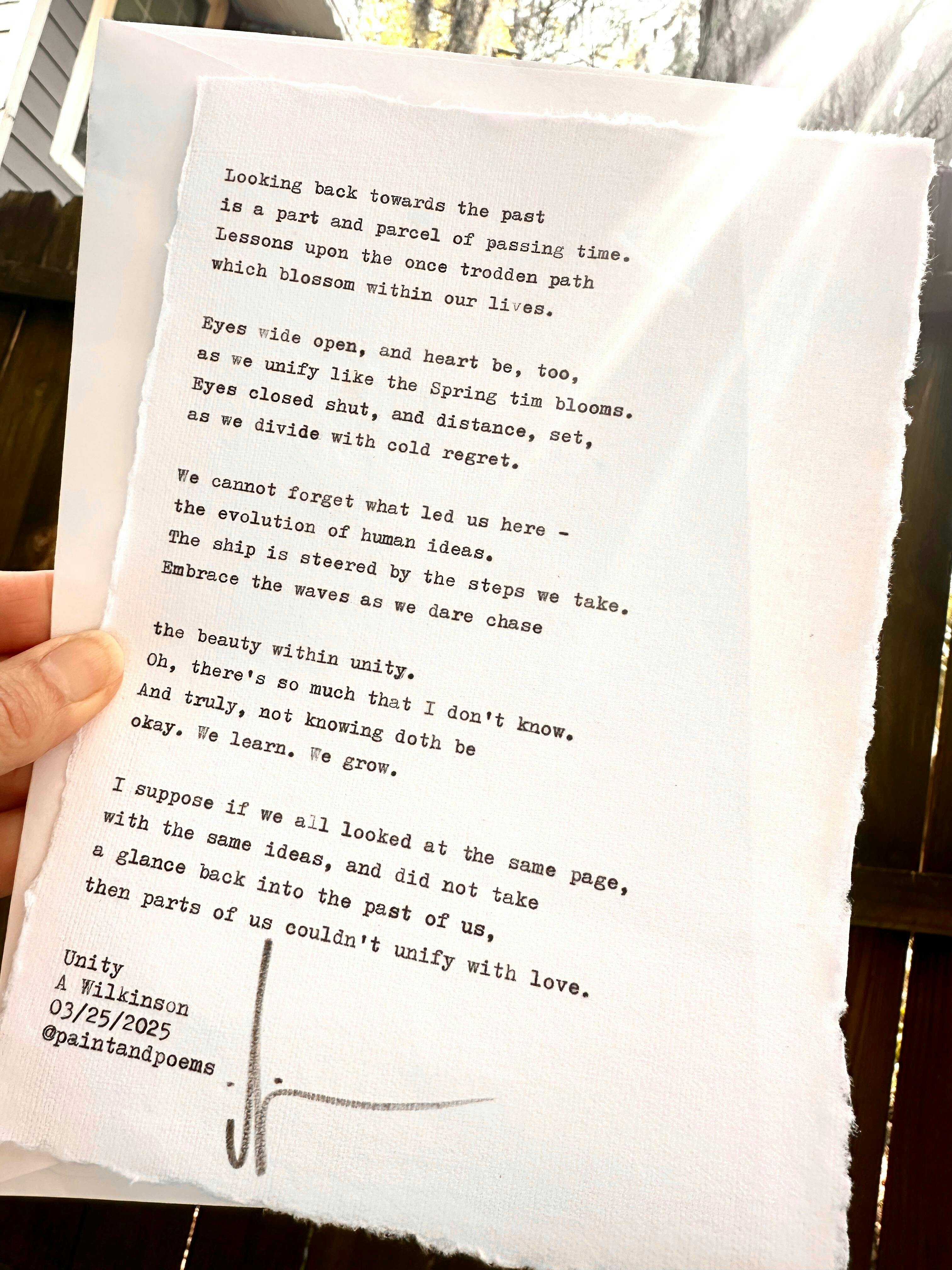 My mum and I were visiting Savannah in april and met this lovely human being in the park and he gave us an amazing experience! Neither of us thought much of it, but after reading the poem I asked for, happy tears and a big hug took over! He did another one for my mum, on the more hard parts of life, and that as well ended in tears and a big hug and a lot of self love. The most personal gift ever - whether to yourself or someone Else β€οΈ